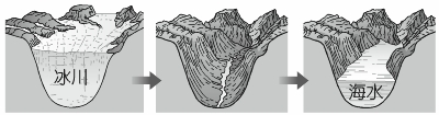 在高寒地區由雪結晶成巨大的固體,因重力使塊體向下流動。