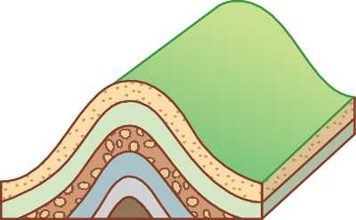 背斜是兩翼是相背傾斜,即岩層向上凸。