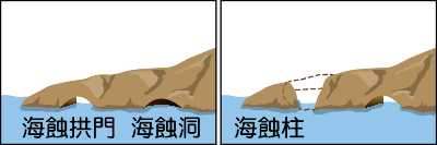 海浪的侵蝕地形。